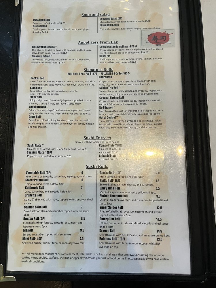 x Out of Control, x Golden Trio, x Rock N Roll, x Red Dragon, x Tuna Roll, x Salmon Roll, x Yellowtail Roll, x Shrimp Tempura Roll, x California Roll